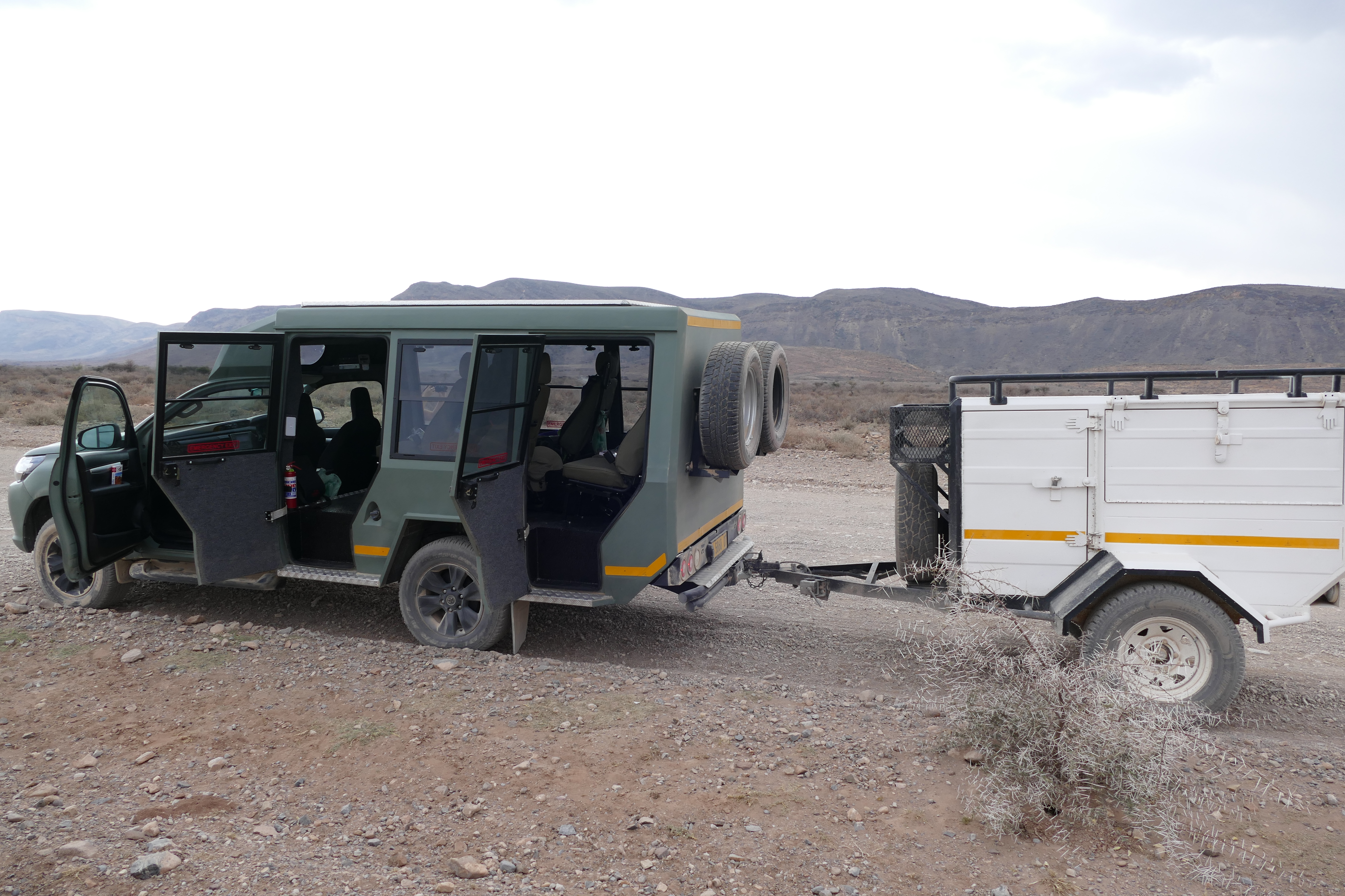 As I know really urgently needed the bathroom I asked the proprietress if I could quickly go whilst they would load there luggages into the trailer. whilst washing my hands I was thinking by myself that the 6 people would now probably all have occupied the inner space and seats of the Jeep and only the seat next to the driver would be free. This would then isolate me from the start from the rest of the group as they all had met eachother already the day before and had dinner with eachother … and are all angry as because of me thy couldn´t start the tour early in the morning. Very spontanously when I returned back to the car and got into the inner space (where the three ladies were already sitting, bags on all seats …) and said to them that I would leave one of them the best seat in the entire Jeep – the one next to the driver as this one is the spacious one, the one with the best view as a compenssation that they all had waited to long for me and I would take voluntarely the one in the row. It went quiet for a moment and I used that to ask on which of the seats I could sit on. So Rita finally took the bag from Frederik away and said that I could use that seat, Frederik would then sit next to the driver. – In reflection I think if my gut would not have told me to react like this I probably would not have found a connection to the group!