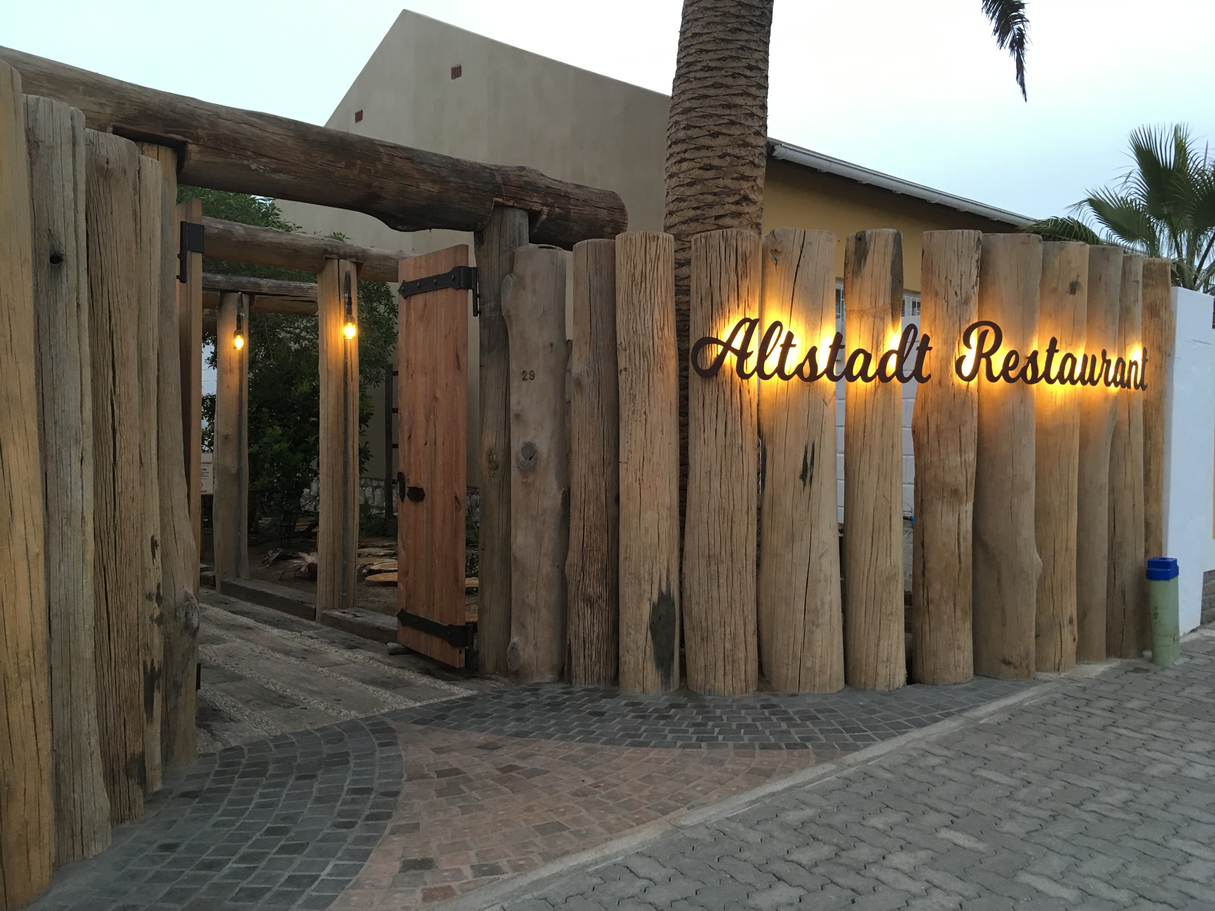 After a short refreshment I met again with Ann and Kurt and initially with Rita and Frederik to stroll through the city till dinner time. After half an hour running behind Rita and Frederik who obviously had a specific target and goal for the afternoon which we haven´t been aware off we decided to split and I continued with Ann and Kurt to look for some attraction in Swakopmund. With no real plan we walked through the streets, looked at shops and buildings, found some of the historic places in the city and ended at the beach. The more it got darker we felt more and more unsafe and we tried to walk faster back to the main streets. We remebered that we had walked past a brewery before and decided to treat ourselve with a beer. http://www.swakopmundbrauhaus.com/What a great idea!! That place is really cosy and very welcoming! A good start for our dinner at the Altstadt Restaurant, a typical german food restaurant.