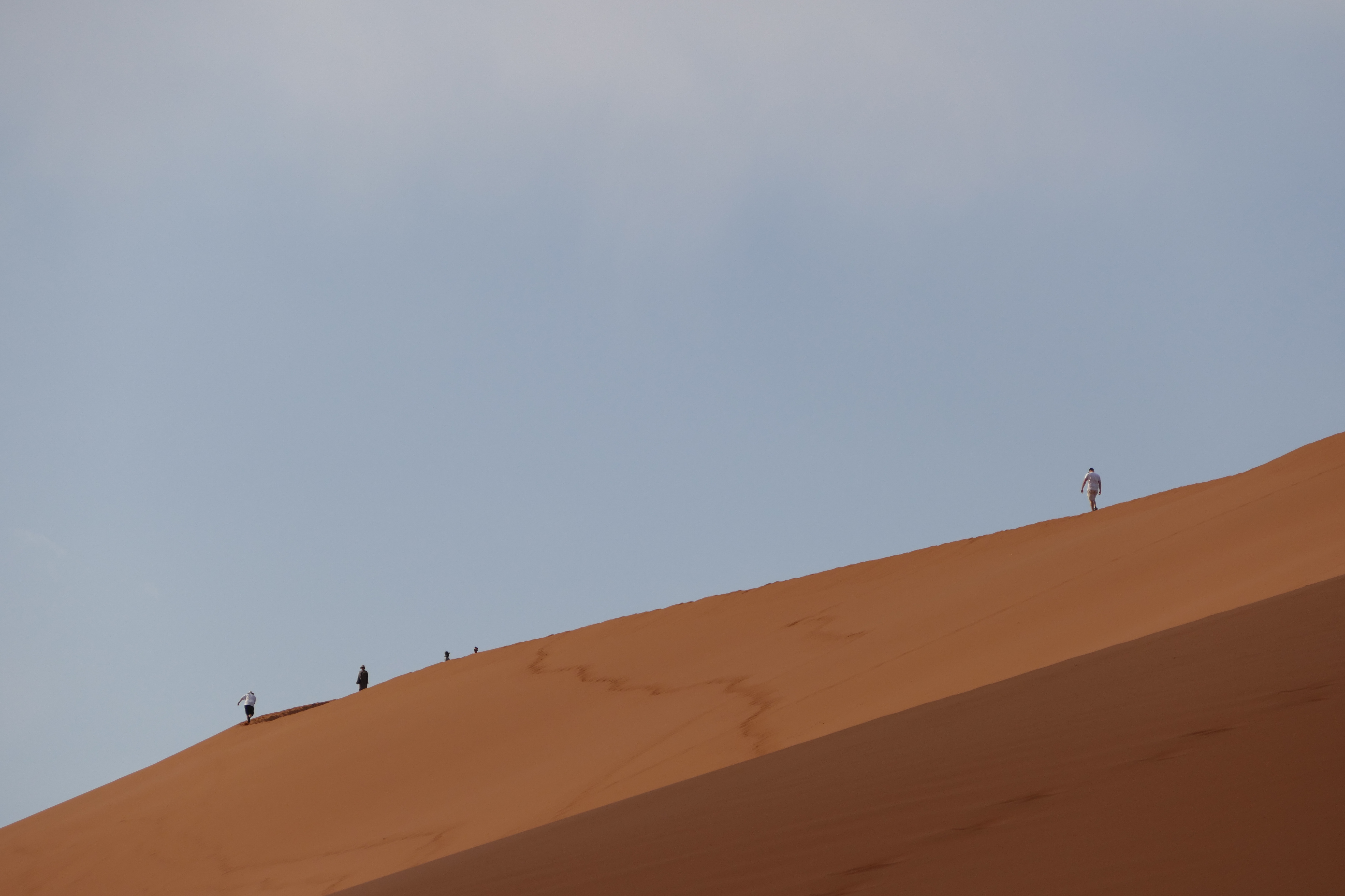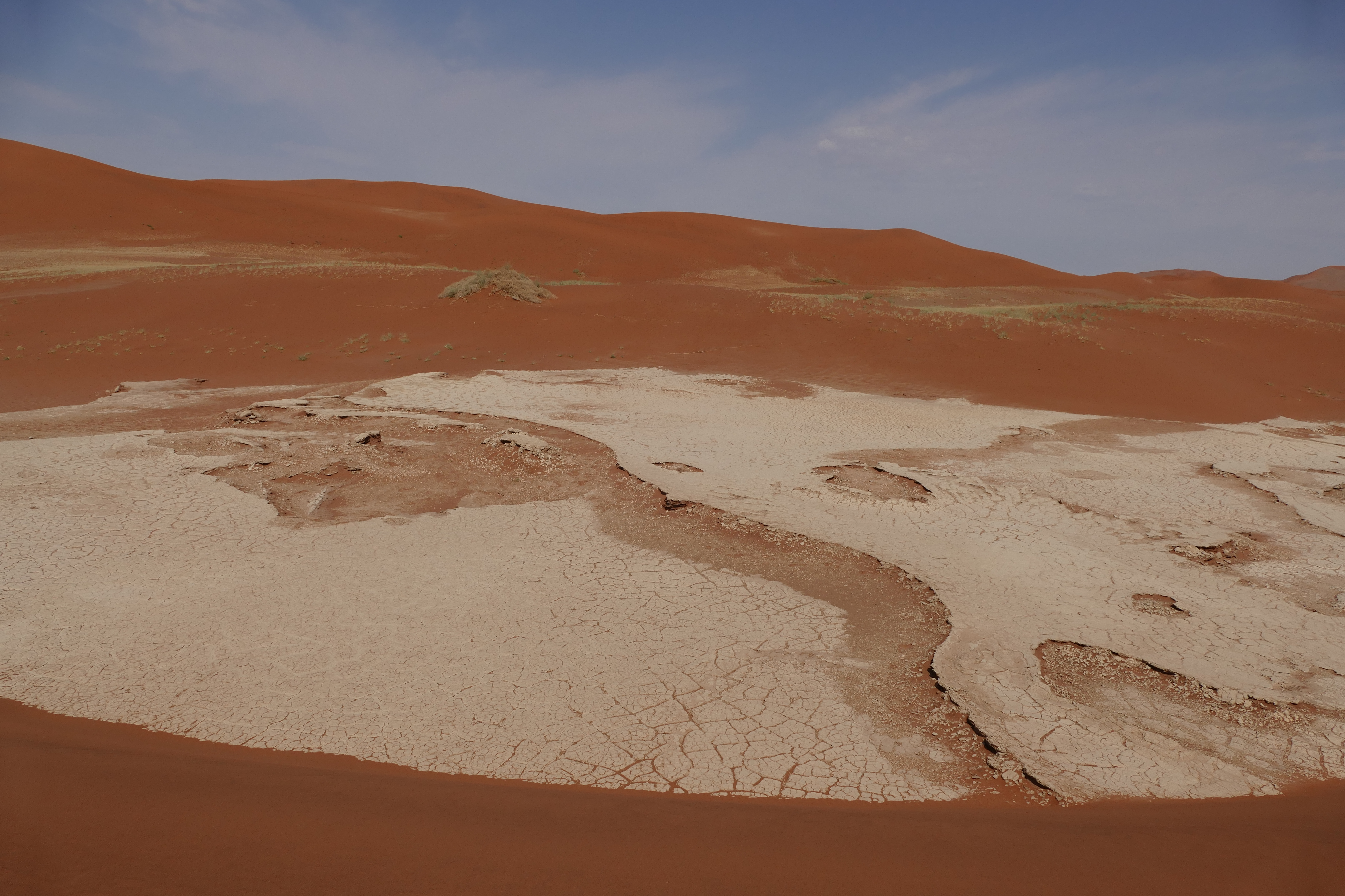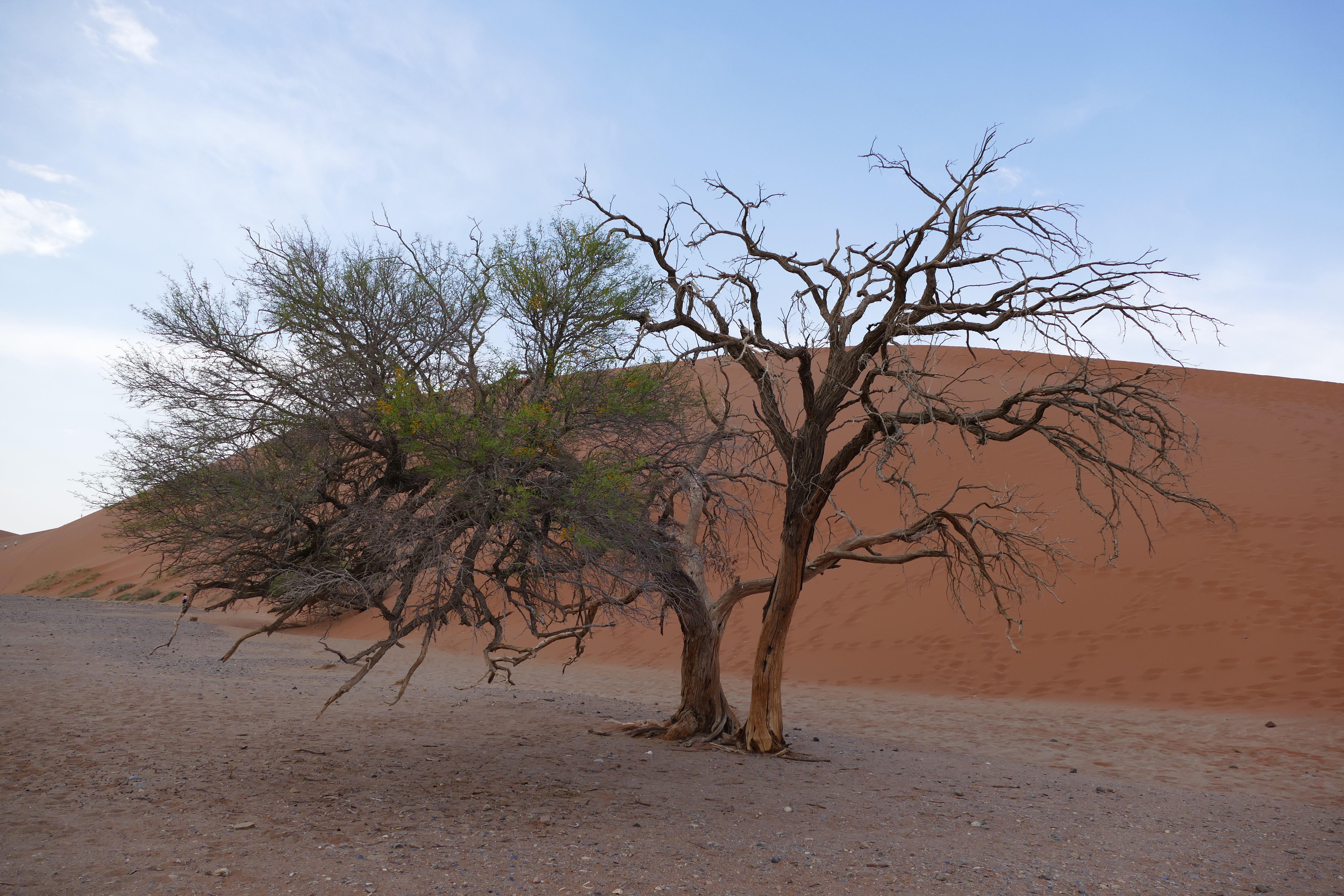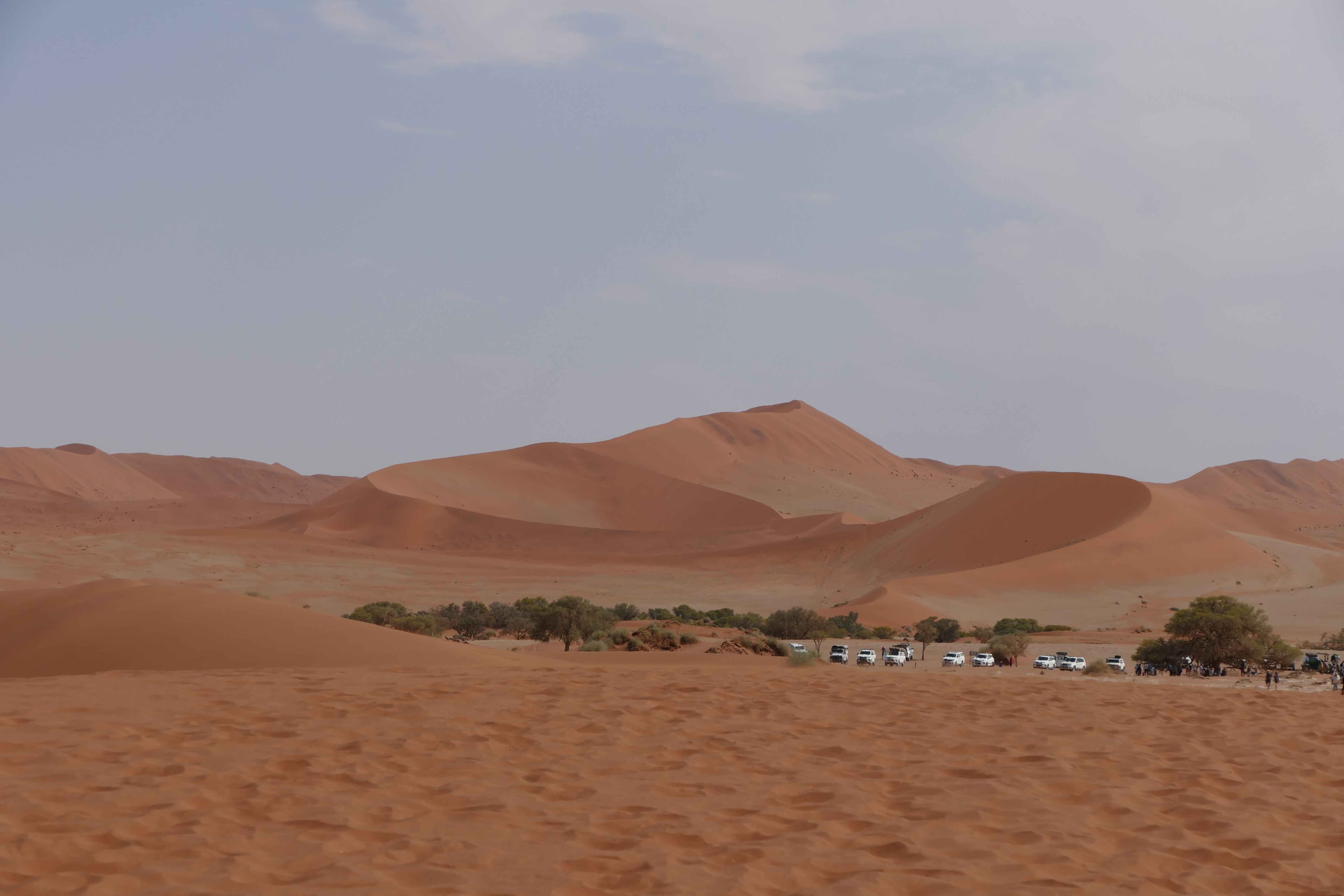Sossusvlei is situated in the largest conservation area in Africa – in the Namib-Naukluft National Park – and it is a very spectacular area in Namibia. Surrounded by large, impressive red dunes Sossusvlei is a white, salt and clay pan. The dunes in this area are some of the highest in the world, reaching almost 400 meters providing stunning views and wonderful colours the early morning and evening lights. We stopped at several dunes to take some amazing pictures and then walked up the Dune 45. It was hot, very hot and it´s quite steep uphill I must say and really hard to walk in the sand. I probably carried half of the dune in my shoes on the way back 🙂