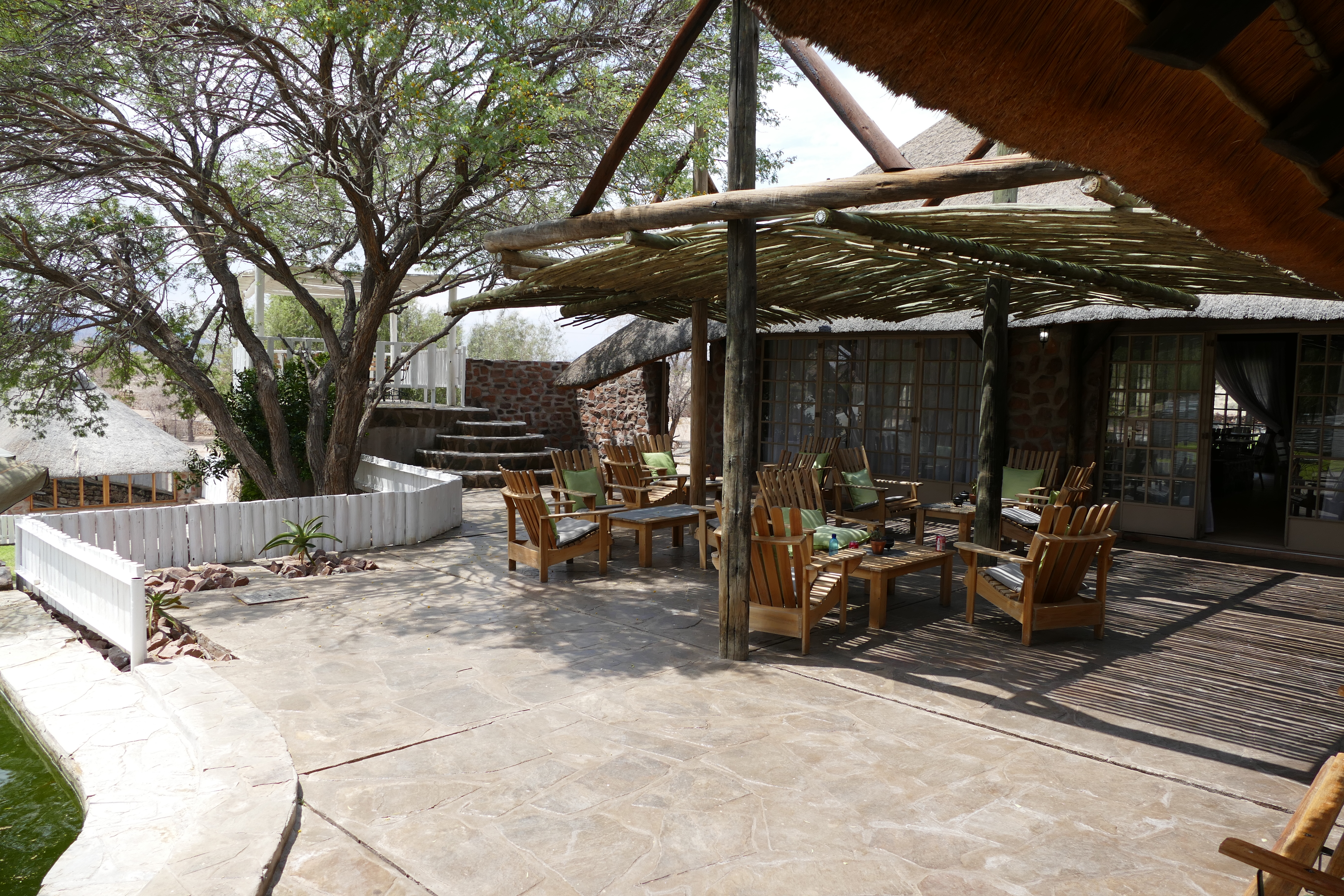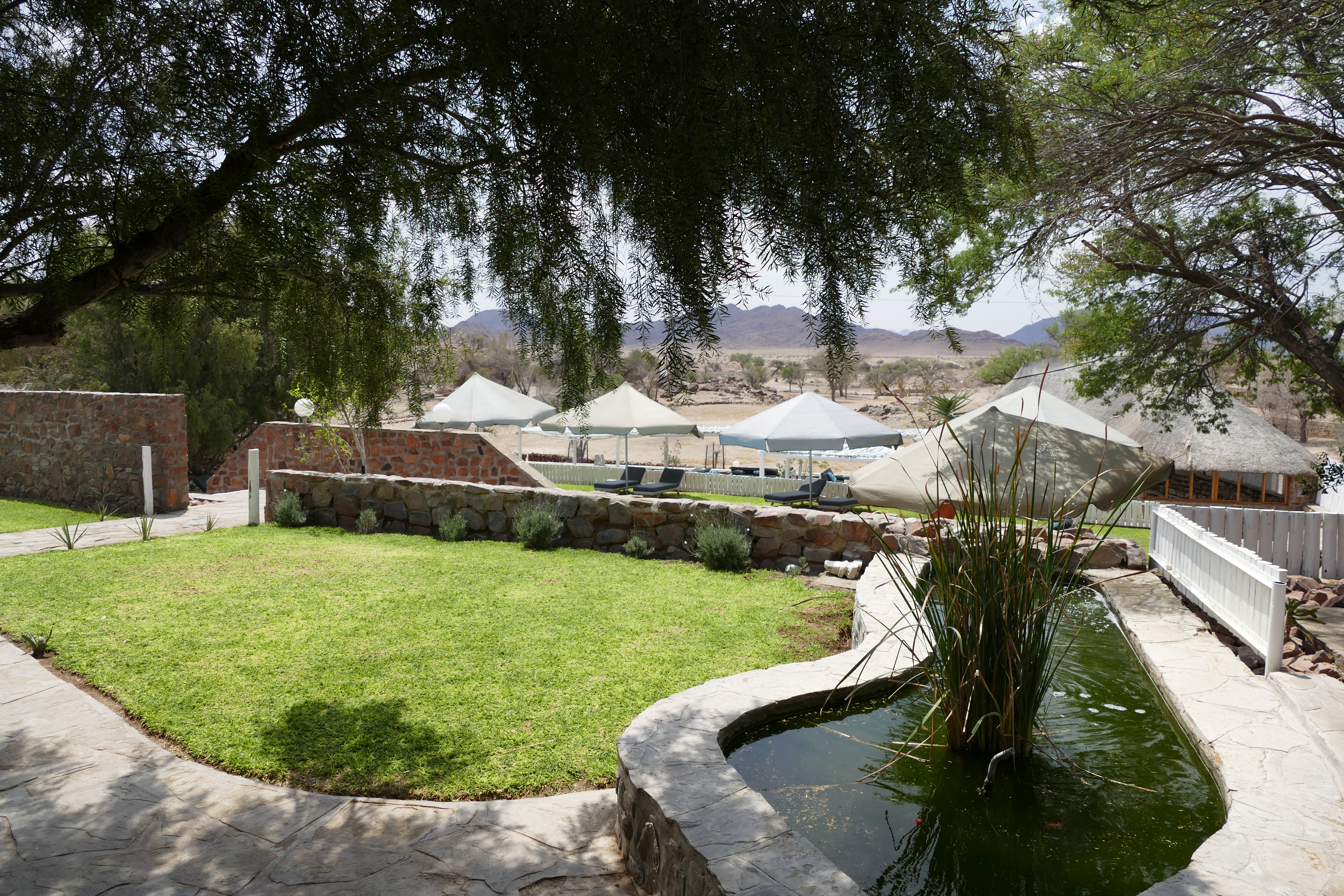 If you ever go there don´t forget water, water and water and sun cream and a sun hat! Its a very dry and hot area and the dust of the dunes it adding to that. We returned back and met our driver and he took us to the last “attraction” of the day: the Sesriem Canyon. It was almost 42 degree Celcius when we go there. So a short climpse of the Canyon and we had enough for the day. We probably got back to our accomodation by 3pm and we had some free time for the rest of the day which I used to chill out a bit and to enjoy the view from the terrace of my tent. I had a little swim in the amazing pool, some cool drinks and read my book. Dinner was then at 7pm again and some strong wind came up already …