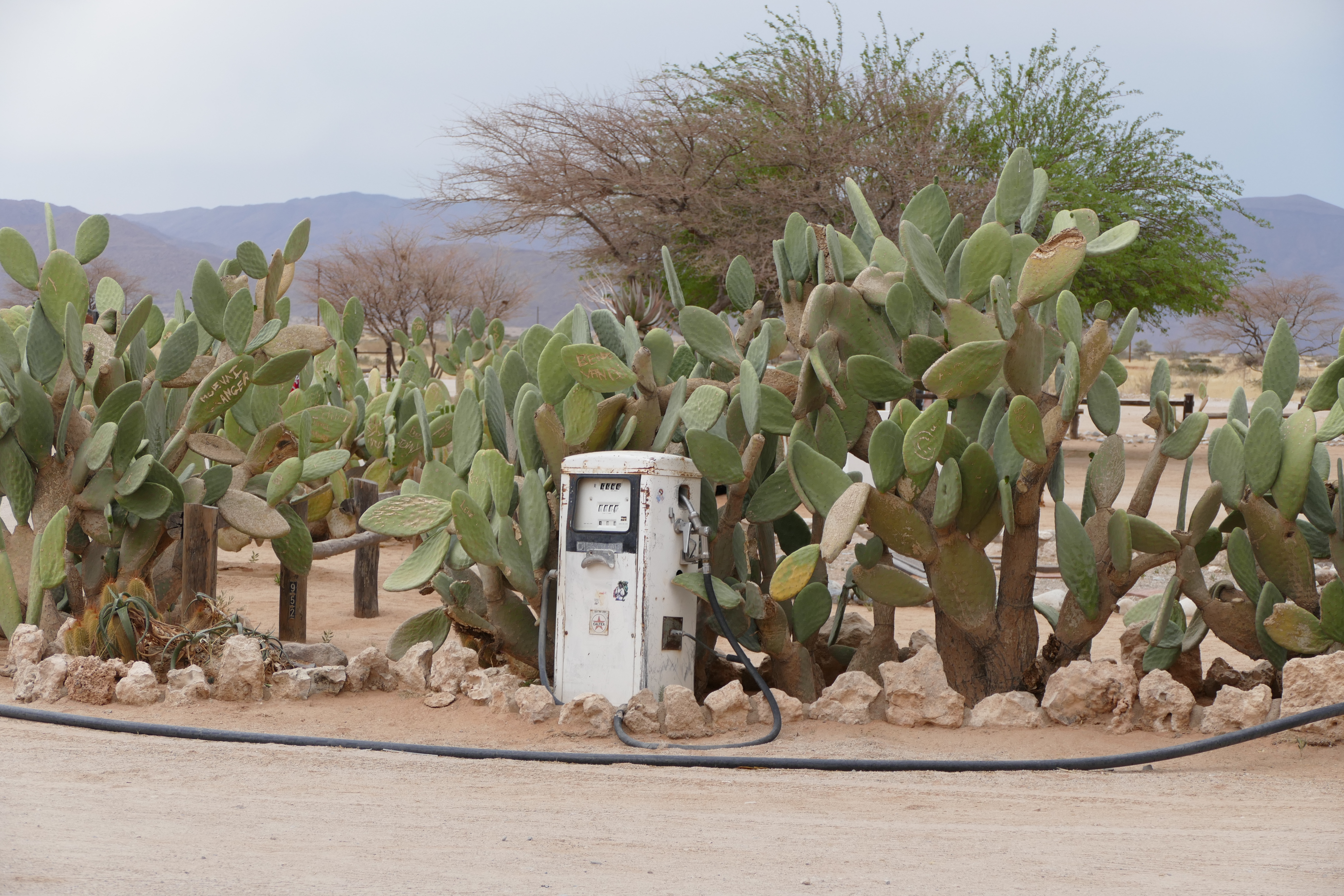 After s very strong coffee and good breakfast we hit road again. Well – whatever you would call it …. 80km/h was the maximum on that street – nearly 400km to drive till Swakopmund, our destination of that day. First stop to get fuel was at Solitaire.