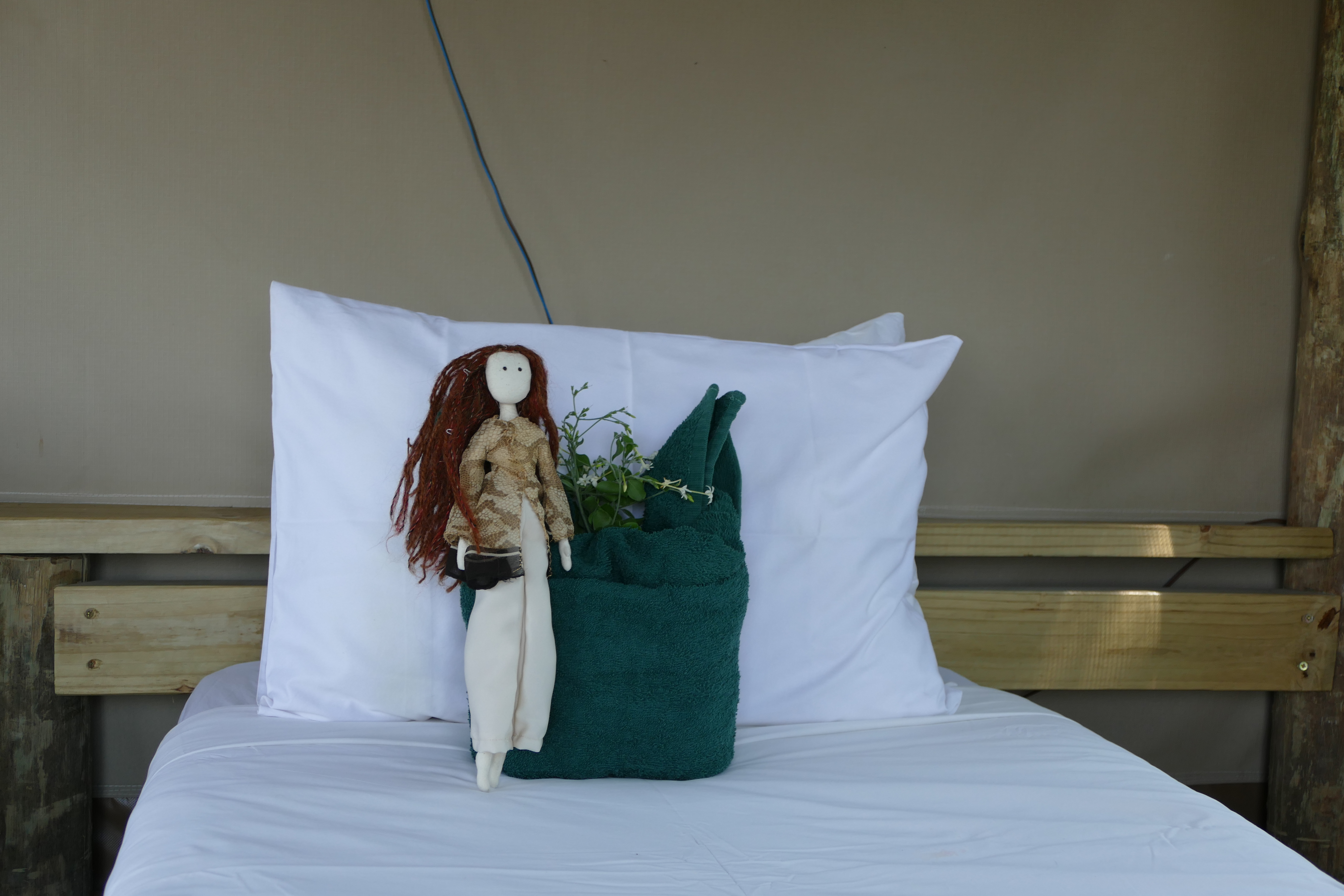We landed right next to our camp accomodation for the next two nights – Oddballs Camp https://www.oddballs-camp.com/. Right on the edge to Chief´s island are the tents and the open restaurant & bar space. Very warmly welcomed from the staff there we got some introductions first: We would go on game walks two times a day or on one walk per half days. Means we would start that afternoon for a first 1,5 hour excursion to Chief´s Island, next morning we would get up at 6am and start for a 3 hour walking excursion and then later in the afternoon have a 1,5 hour tour going on a Mokoro ride on the other side of the delta. The last tour would then be on the second morning where we would go for 1,5 hour walk again before we would fly back to Maun at 12pm. The outdoor showers are via a bucket which we will have to lift up and toilets are also outdoor. All meals would be provided in the main area, values can be stored in a black box with a locker in our tents, electricity charger are only in the main house. If we would see any animals in the camp we should go back to our tents and wait till they passed – all animals would walk through the camp, so better no night excursions and to bring the torch for dinner. We had to sign a document that we understood all the risk, that we are fit enough for all the walks and that we are there on our own risk! Well … I guess that was the first time that some of my group members thought about what they are doing there and risking … till that point it was all easy peasy, we in a car, quite from a distance to all the big animals ….