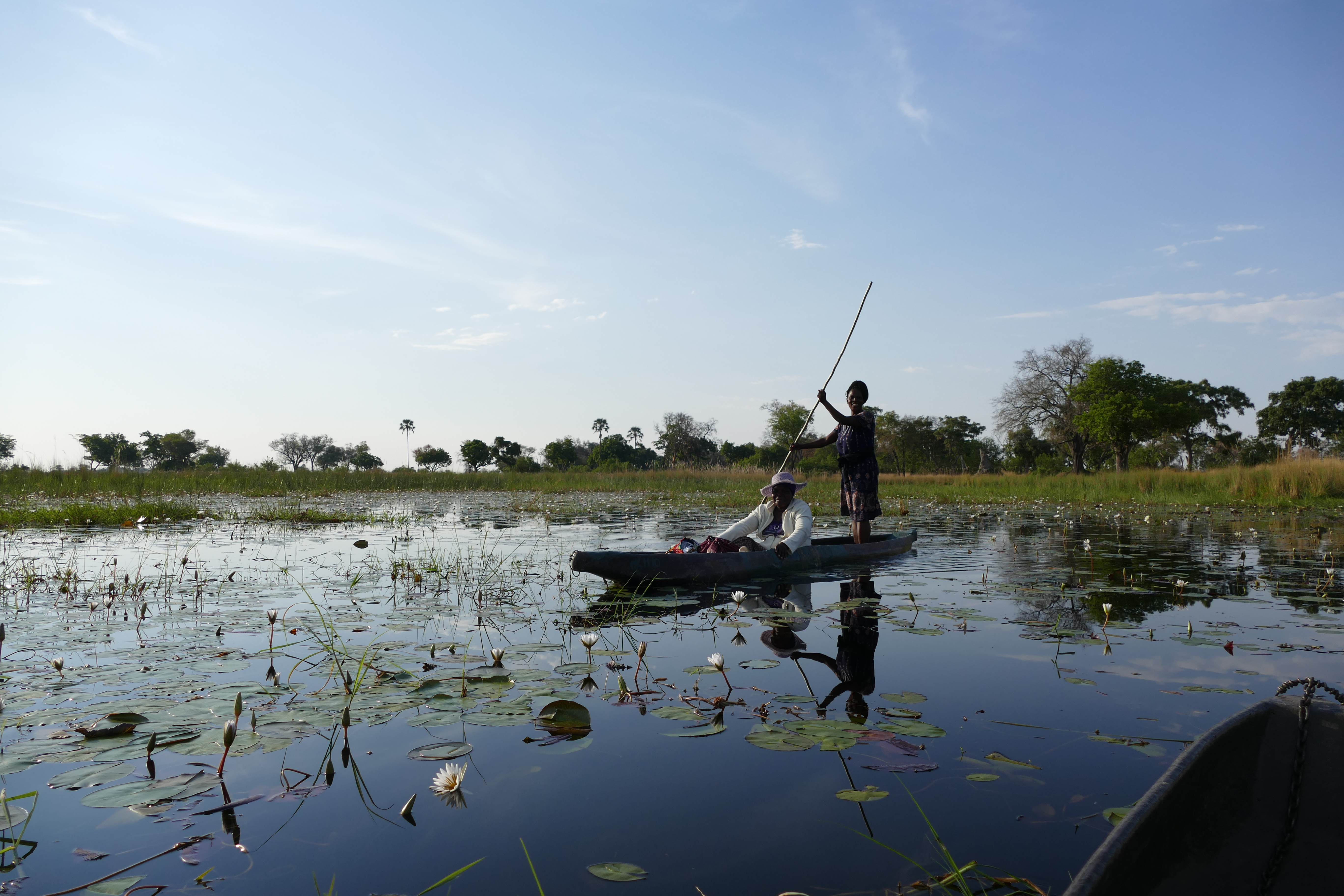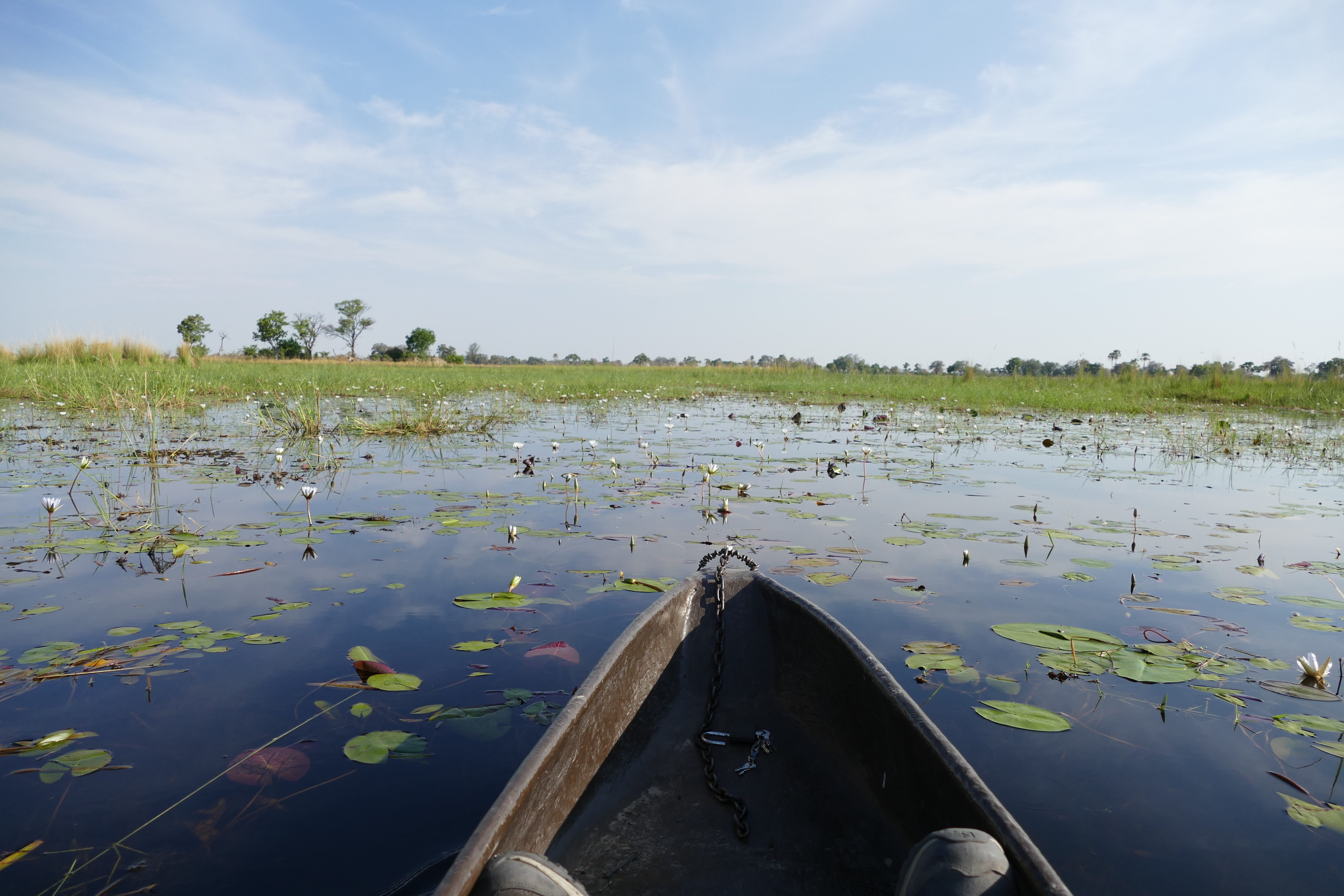 At 4pm we started on our first walk … we had to take the Mokoros to get on the Island for the walk and our guides were a bit nervous because of the hippos …. We learned a lot about footprints of the various animals and their traces. We also enjoyed the landscape and got some insect into plants and trees. So nothing really exciting happened. But it was a really nice change to walk instead of sitting in a jeep even though we thought that some wild animals could be hiding in the grass …